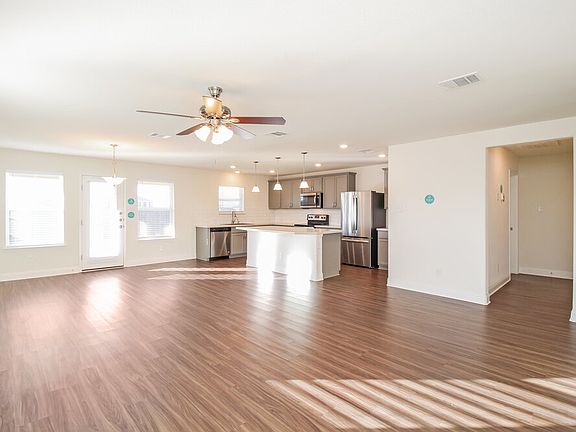 - Exterior features: 1 Story, Dual-Vanity Sinks, Extended Driveway, Garden, Granite Countertops, Large Backyard, Open Floor Plan, Smart Home, Stainless Steel Appliances