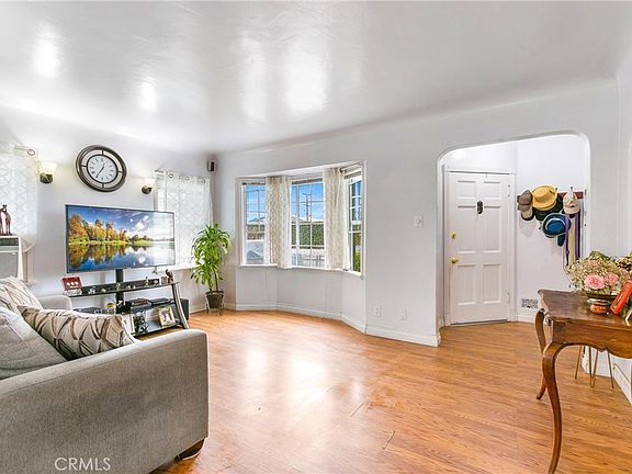 This classic 1939 Traditional residence has style, comfort and charm. The welcoming front door opens to a formal entry leading to the living room featuring a large bay window offering plenty of natural light. The open dining area has large windows and a glass door leading to a lovely, lush rear yard. The updated kitchen has wood cabinets, granite countertops, tile floor, stove and ample storage space. Other features include a well-designed floor plan, 860 square feet of living space and two spacious bedrooms each with a ceiling fan and mirrored wardrobe closet. Additional amenities include one full bathroom, a separate laundry room with extra storage and rear yard access and an outside camera security system. The showcase feature of the property is the fully enclosed 4,807 square foot lot with front and rear yards, colorful gardens, a mature citrus tree, inviting patio, ample parking and a 2-car detached garage. This home is perfect for comfortable living and enjoyable entertaining.