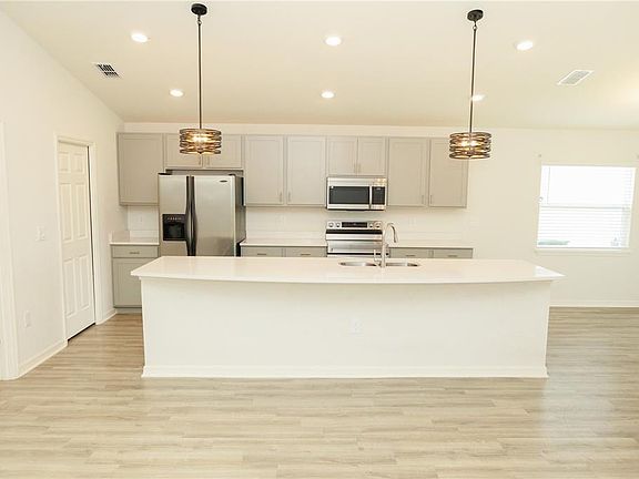 Welcome to this stunning 4-bedroom, 2-bathroom home featuring an open-concept layout perfect for modern living. Enjoy a spacious living room with a ceiling fan and decorative lighting, seamlessly flowing into the open kitchen equipped with shaker-style stone cabinets, Silestone countertops, stainless steel appliances, a large island, walk-in pantry, and an inviting dining area. The home boasts luxury wood-look vinyl plank flooring in common areas and stain-resistant carpeting in the bedrooms. The primary suite offers a walk-in wardrobe and a private en-suite bathroom with dual vanities, a tiled walk-in shower, and a private water closet. Each bedroom includes a ceiling fan and window blinds for added comfort. Additional features include an energy-efficient insulation system and double-pane windows for year-round comfort and savings. The dedicated laundry room adds convenience to everyday living. **Nearby amenities include:** * A new Publix Supermarket and gas station coming soon just minutes away * Easy access to Legoland, local elementary schools, a playground, and a community pool Don’t miss your chance to make this beautiful house your dream home!