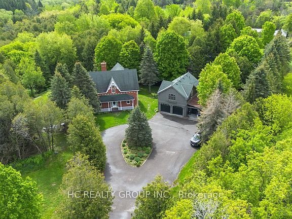 Great Income Potential and Future Development.Unparalleled location just 30 minutes from Torontos north end Hwy 401 and 2 minutes from Hwy 404. A rare offering nestled in the serene landscape of East Gwillimbury. This custom-built Victorian replica home is gracefully set on nearly 24 acres of private land**WOW**!, and surrounded by lush forest, a tranquil river, and a romantic heart-shaped pond known as Heart Lakecomplete with a charming dock, ideal for tranquil canoeing, fishing, or unforgettable wedding ceremonies. The 2-storey brick residence exudes classic charm and craftsmanship, featuring wide plank hardwood floors, a spacious country-style kitchen with center island, and inviting principal rooms filled with natural light. The main house offers 5+2 bedrooms and 5 bathrooms, including a generous primary suite with 4-piece ensuite and walk-out to a balcony. The finished walk-out basement includes a second kitchen, living area with fireplace, and an additional bedroom perfect as an in-law suite or for guests. A separate detached 3-car garage with living space and a Great Hall above offers flexible potential as a studio, office, or additional accommodations. The sprawling property includes private walking trails, open meadows, wooded areas, and scenic views in every season. Just minutes from Hwy 404, and New Costco, supermarkets, and top amenities, this is a once-in-a-lifetime opportunity to own a secluded estate that combines natural beauty with refined comfort. with auxiliary buildings including a drive shed and a second residence. What truly sets this property apart is its proven capacity as a profitable venue for weddings and social events. With breathtaking natural backdrops, expansive lawns, and ample parking, it offers a unique income stream for those seeking a blend of lifestyle and business. **EXTRAS** Good possibility to sever the land. All Furnitures and appliances, Elfs, Windows Coverages.