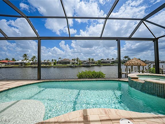 Welcome to this stunning Martinique model home, a 3-bedroom, 3-bathroom plus den gem nestled in the desirable Southwest Cape Coral. Boasting DIRECT SAILBOAT ACCESS, this 2530 sq foot home is a true waterfront paradise. The home offers a 3-car garage and sits on a lushly landscaped lot with mature tropical foliage. A paver driveway leads you to the elegant entrance along with a NEW ROOF 2022. Feel secure with IMPACT WINDOWS and WHOLE HOUSE GENERATOR! Step outside to your own private oasis, featuring an expansive picture frame screened lanai with a sparkling saltwater pool, sundeck, and a relaxing spa—ideal for enjoying the Florida sunshine. The outdoor kitchen makes entertaining a breeze, offering a perfect setting for alfresco dining. Inside, the chef-inspired kitchen is a dream with a large island, prep sink, breakfast bar, and stunning granite countertops throughout. Custom wood cabinetry adds both style and function. The spacious owner’s suite is a retreat with dual sinks, a walk-through shower, and a separate soaking tub—designed for ultimate relaxation.