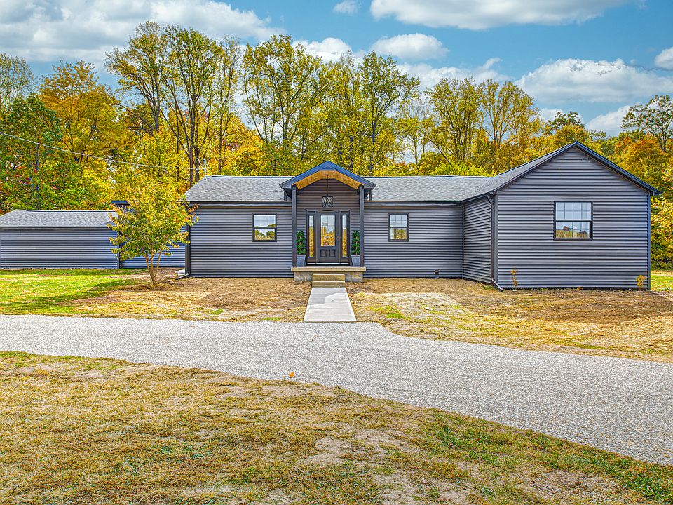 A MUST SEE HOME! Check out this gorgeous, newly renovated home with 5+ acres on the outskirts of Covington! You're welcomed by a beautiful circle drive and welcoming front porch. As soon as you step inside the home you are greeted with vaulted ceilings, new luxury vinyl plank floors, beautiful new light fixtures, and a lovely front entryway. The living room boasts a fireplace insert with a stunning accent wall. Just off the living room thru the sliding glass doors is the back deck overlooking the private backyard and so perfect for entertaining. As you move through the home, you'll find a bathroom with a tub/shower combo, twin vanity sinks, and beautifully decorated. The master bedroom has a large walk-in closet opposite the ensuite master bathroom. The master bathroom has stunning free standing tub, shiplap walls, twin vanity sinks, and tiled shower stall. The main floor has three spacious bedrooms with plenty of natural light. Open concept kitchen, dining, and living room space. Brand new kitchen remodel with all new upgraded appliances. Including a wine and beverage cooler, large refrigerator, dishwasher, built-in oven, gas stove, and a pot filler. Quartz countertops. Large pantry with lots of storage. The laundry room has a washer/dryer hookup and utility sink. The house comes with a fully finished basement with a family room and bedroom. Perfect for storage or entertaining! Carpeted bedrooms throughout the whole house. The house also comes with an attached 2 car garage, 1.5 car detached garage, water heater, sump pump, and more. The entire house has new updated plumbing and electric, new furnace, private well, new doors, and new windows and new roof. Move in ready and beautifully renovated. Propane tank is rented.