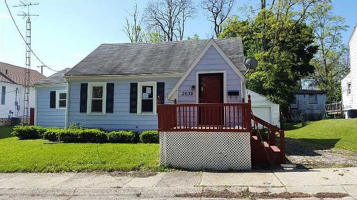 Cozy bungalow built in 1941 with three bedrooms, one bath and over 1200 square feet with a full basement, central heat and air conditioning and detached garage.