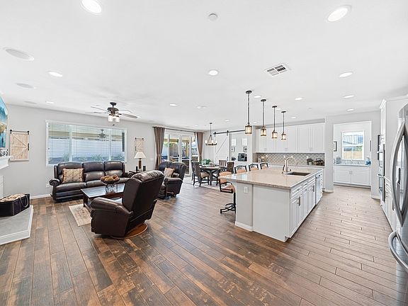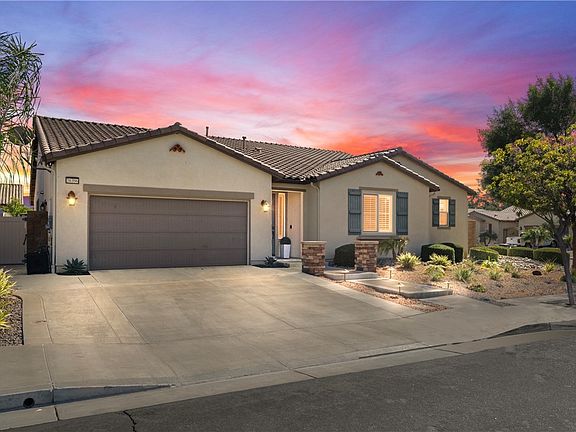 ***POOL HOME, LOW HOA and PAID OFF SOLAR*** Must see home where comfort, elegance, and California style come together on an expansive premium lot with breathtaking mountain views and unforgettable sunsets. This 2,805 sq ft ranch-style home greets you with a charming covered front porch that sets the tone for what’s inside. Step into a thoughtfully designed interior with a gourmet kitchen as its centerpiece, upgraded with sleek quartz countertops, double ovens, a farmhouse sink, a coffee and wine bar, and a spacious walk-in pantry. Perfect for entertaining, the kitchen flows into a breakfast nook, a butler’s pantry with a prep sink, and an inviting great room. There's even a craft room or tech center, making the layout as functional as it is beautiful. The home’s thoughtful floor plan includes a formal dining room with easy access to an adorable covered courtyard, ideal for al fresco dining or relaxing with a good book. Each of the three large bedrooms has a walk-in closet, ensuring plenty of storage space. Outside, the landscaping is low maintenance and offers the perfect border to the build it pool & spa. Enjoy the covered patio equipped with ceiling fans and a top-notch built-in BBQ, perfect for gatherings. With custom upgrades throughout, including whole-home water softening system, new flooring, lighting, a cozy fireplace, epoxy flooring in the garage, and additional outlets, this home feels as pristine and polished as a model home. It’s a unique find where luxury meets everyday comfort, all within a stunning Wildomar setting.