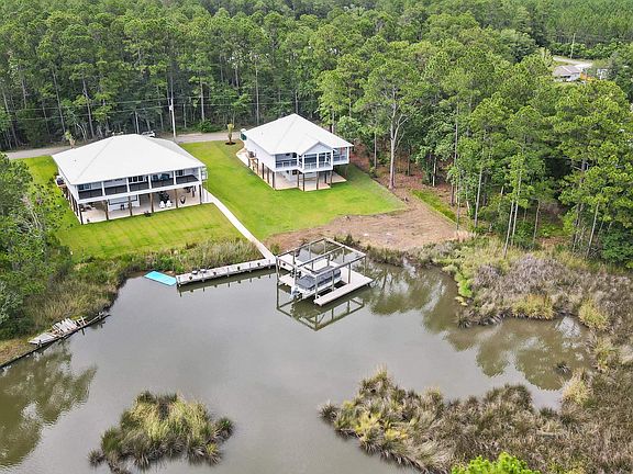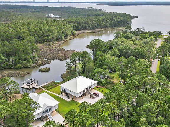 NOW PRICED BELOW APPRAISAL! NEW BOAT DOCK NOW COMPLETE! Boat dock and walkway utilize state-of-the-art thruflow material. Buyer to have the luxury of having builder add lift, roof, power and water to fit their needs at buyers expense. The home itself is brand new construction, waterfront home located in highly desired Elberta, Alabama now available! This 3 bedroom, 2.5 bath, 1,823 sf home is Gold Fortified. Pier permit, survey and elevation certificate is already in hand! With 75’ of waterfront, this gorgeous home features concrete board siding, metal roof, low-profile steel cable railing, Trex decking, gutters (front and west side) and so much more. Underneath the home, you’ll find room to add an outdoor kitchen and bar space. Storage area and restroom under home make this the perfect area to entertain all year long. Plenty of covered and non-covered parking is available as well. Upstairs you will instantly fall in love with the water views of Hammock Bay that can be viewed through the large windows and sliding glass door. The open concept kitchen and living area allow large gatherings to flow freely throughout the home, while the coastal-colored tile backsplash and neutral Quartz countertops compliment the brushed nickel appliances. Custom cabinetry, stainless sink and large island/bar are beautiful touches as well. Views from the master bedroom are incredible. It is not uncommon to see dolphins splashing about as well as blue herons and pelicans completing this idylic backdrop. The 45’ porch off the back will soon become your favorite place to start your day as well as wind down with your favorite beverage. The location is ideal, only minutes to Barber Marina where you could keep a boat large or small, Pirate’s Cove, the perfect place to grab a burger and bushwhacker and just a short drive to all of the amenities in Foley, AL or Pensacola, FL. This property is one you definitely won’t want to miss out on. Schedule a showing today!
