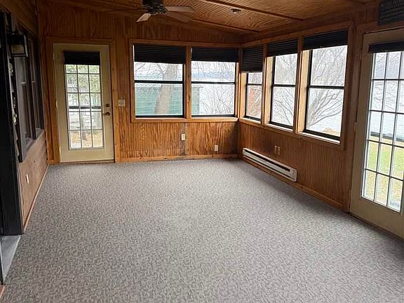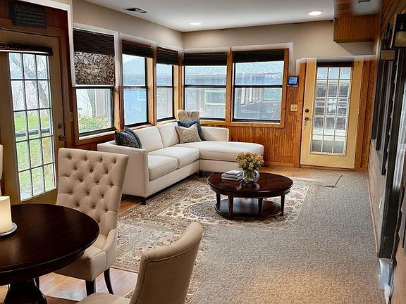 Charming and well-maintained 3BR/2BA lake home on a rare peninsula lot with 365’ of shoreline on Middle Jefferson. Purchased in 2013, the seller has made extensive updates throughout. The kitchen features quartz countertops, ceramic tile backsplash, stainless steel appliances, upgraded lighting, and beautiful cabinetry. Main floor bath fully remodeled with a ceramic-tile walk-in shower. New manufactured wood flooring on the main level and new carpet installed recently on both levels. Upper level includes 2 bedrooms and a fully renovated bath. New Andersen replacement windows installed September of this year. A bright four-season porch with new flooring provides year-round enjoyment. Exterior features include a 2-stall garage plus two additional attached rooms with separate entrances—ideal for storage, workshop space, or lake equipment. The peninsula lot offers sweeping views, abundant wildlife, excellent privacy, and a lakeside fire pit area. Crawlspace includes a CleanSpace Encapsulation System (installed 1-4-2017) with a 25-year warranty. 3,000-gallon septic holding tank recently pumped and certified compliant. Property is part of the Sioux Trail Water Association ($150/year). Middle Jefferson offers excellent recreation, fishing, and access to the Jefferson/German Lake chain. A well-loved, nicely updated lake home ready for its next owners.