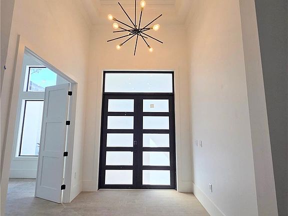Professional photography coming soon! The home is 95% complete. This exquisite new-construction residence offers the perfect fusion of sophistication, comfort, and smart design. The home welcomes you with a spacious paver driveway, electric gate, and full perimeter fencing, providing both privacy and curb appeal enhanced by upgraded landscaping and a full irrigation system. Inside, every detail has been thoughtfully curated  from the shiplap tray ceilings and screwless wall plates to the seamless integration of smart-home technology and low-voltage panel. The designer chef’s kitchen features custom cabinetry, a shiplap-wrapped hood, Sub-Zero refrigerator, and Wolf appliance package, all complemented by upgraded quartz countertops with a waterfall island edge, under- and over-cabinet lighting, and elegant floating bathroom vanities with ambient lighting below. Luxury continues throughout with European porcelain-tiled bathrooms floor-to-ceiling, extra-tall frameless barn doors, and lighted mirrors in every bath. The home is truly built for refined living and entertaining, offering a fully wrapped granite outdoor kitchen with stainless steel Blaze grill, sink with storage, dual under-counter refrigerators, and ample cabinetry for effortless hosting. Step outside to your private resort-style pool and spa, surrounded by paver decking, picture-window screen enclosure, and lush tropical landscaping that enhances privacy. The Cypress wood plank ceilings in the lanai and entryway create warmth and architectural elegance, while the insulated garage doors and epoxy floors (pending) complete this home’s meticulous attention to detail. Blending modern innovation, high-end finishes, and timeless design, this home delivers a rare level of luxury and craftsmanship  inside and out.