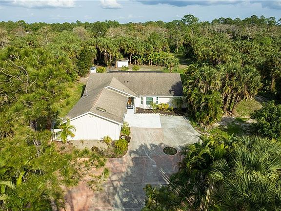 This 3-bedroom, 2.5-bathroom home in Golden Gate Estates is nestled on a sprawling 2.5-acre parcel, offering a canvas for your imagination to flourish. Step into the spacious interior, where endless possibilities await. This split floor plan home has three bedrooms and Impact windows and doors throughout providing comfort and privacy. The open kitchen features propane cooking and a slide window for outdoor entertaining. Outside, discover your own oasis with a pool which invites you to relax and unwind, surrounded by the lush greenery of your own private retreat just minutes to Collier Blvd and 12 miles to the beach. Enjoy the perfect blend of indoor and outdoor living with a screened-in lanai, providing a seamless transition between the comforts of home and the beauty of nature. Blooming landscaping and fruit trees provide a great foundation on the 2.5 acres with potential for expansion, landscaping, or creating the ultimate outdoor escape is yours to explore. The gated entrance leads to a large circular driveway and oversized 2 car garage which allows for plenty of parking. Don't miss this chance to craft the home that you've always envisioned in the heart of Naples’s Golden Gate Estates. Bring your vision and make it your own.