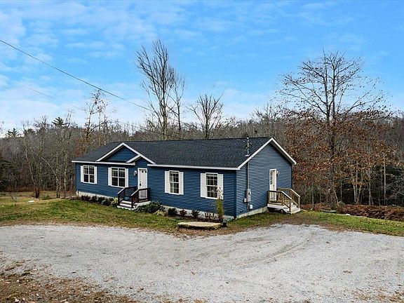 Welcome to a home that instantly captures your attention with its grace, light, and effortless country charm. Perfectly set on a 2+ acre corner lot, this ranch offers wide-open, sunlit spaces framed by the natural privacy of surrounding woods—a peaceful rural escape from the moment you arrive. Step inside to a bright, uplifting open floor plan, where sunlight spills across the living, dining, and kitchen areas. At the center is a show-stopping kitchen island with expansive seating, abundant workspace, a farmhouse sink, and built-in dishwasher, & walk-in pantry—your ideal hub for cooking, gathering, and everyday living.The split floorplan provides great separation, placing the serene primary suite with its beautifully tiled step-in shower and generous closet on one end and the remaining bedrooms on the other. A convenient first-floor laundry/mudroom adds ease to daily routines. The full walk-out lower level is a true standout, filled with natural light from full-size windows and a slider overlooking the quiet wooded edge, giving it an above-grade feel. This impressive finished space includes a welcoming media room, a dedicated exercise room, and a sunlit office perfect for productivity and creativity. Outdoors, the spacious yard offers room for play, gardening, entertaining, and peaceful moments, all bordered by trees that provide privacy without sacrificing openness. Bright, spacious, and beautifully designed! SHOWINGS BEGIN AT OPEN HOUSE SAT/SUN 12/6/25 & 12/7/25 12 - 1:30pm