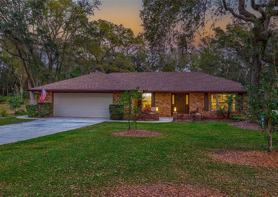 NEW ROOF 2022! BRICK, 3 BEDROOM 2 BATH SERENE HOME in quiet & friendly Deland neighborhood! Come see this beautiful 3 bedroom, 2 bathroom home in the Trails West neighborhood of Deland. The updated kitchen has quartz counter tops with stainless steel appliances, eat-in bar seating, a decorative deep apron sink overlooking the back patio, gorgeous backsplash, double drawer dishwasher, and accent peek-through cabinetry. New patio doors lead to the screened and roof-covered patio all overlooking the well-maintained backyard surrounded by shade trees. Entertain friends and family in the under-roof patio (31 x 11.5) or on the extended outdoor paved patio. Additional wet areas have been recently updated. The master bathroom has a stunning tiled shower with a glass sliding door and maximizes the cabinetry space for storage! The roof is less than 1 year old and a whole home generator was installed and situated on a concrete pad in 2020. Additional updates include a new garage door (2016), patio doors (2021), & flooring. Live in serenity while being only a short drive to Orlando and the beaches or enjoy the community amenities of this neighborhood and stroll the sidewalks of one of America’s Most Beautiful Downtowns, Downtown Deland!