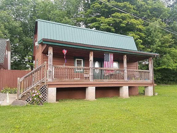 Enjoy watching the sunset from the expansive front porch of this 900 sq.ft. home built 2006. It's adorable and must be seen. Wood siding appears as log cabin, all wood flooring 1st floor, carpeting in 2nd floor bedroom. Three door garage built 2011 with two overhead doors and remote openers offers start of Efficiency Apartment with water, heat and roughed-in bathroom (new shower, sink, toilet installed) fully insulated. Generator Panel to the house and 200-Amp Service to Garage and House. Metal Roofs and all new Rain Gutters. The interior has Corian counter tops, tongue and groove pine walls, and open floor-plan. It appears as a Log Home and offers Country Living only 4-miles from Town. Call to schedule you visit today.
