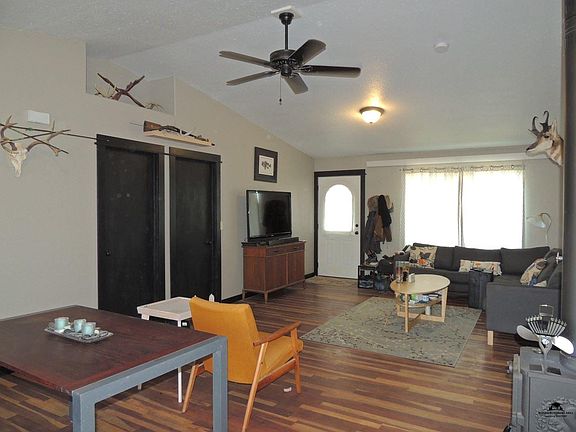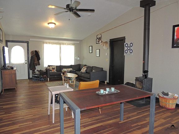 This 2 bedroom and 2 bath home is well laid out with an open living room and dining room with vaulted ceilings. Kitchen provides ample storage. Bedrooms are large and has a Master bath and walk in closet. New Brazilian Cherry flooring is beautiful. Efficient wood stove will stay and home does have a wall unit a/c. Detached 2 car garage is oversized with work space. Yard is fenced with privacy fence and has a garden shed.