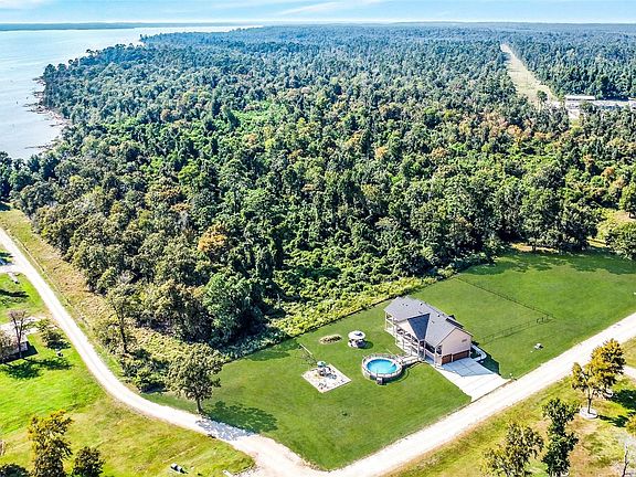 Escape to lakeside living at 264 Falcon Point in Onalaska! This 5-bedroom, 4.5-bathroom home spans nearly an acre in a gated community with low taxes, a community pier, and no rear neighbors backing to a natural tree reserve. Designed for multigenerational living, it features two full levels connected by an elevator. Upstairs offers 3 bedrooms, 2.5 baths, a full kitchen, utility room, spacious living area, and deck with peaceful lake views. Downstairs includes 2 bedrooms, 2 full baths, a second full kitchen, and direct access to a wraparound covered patio—ideal for guests, in-laws, or rental potential. Outdoor amenities include a permanent play structure, covered fire pit area, and an above-ground pool. Whether you’re seeking a full-time residence or vacation retreat, this property blends comfort, flexibility, and outdoor fun with serene privacy just moments from the lake. Don't miss this one!