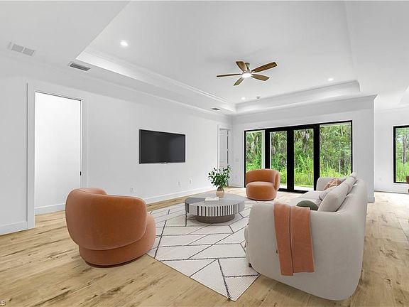 Amazing home built in a 2.5 acres lot, in the area of Golden Gate Estates, features 3 bedrooms + Den, 2.5 bath, & 2 car garage! Living area of 1,900 sq.ft and a grand total of 2,627 sq.ft. Upgrades include wood plank porcelain tile throughout, crown molding, quartz countertops, stainless steel appliances, and solid wood cabinets! The living room and master suite boast tray ceilings. Master wing features an oversized bedroom, 2 spacious Closets, double vanity, and glass door enclosed shower. The outside of this home will not disappoint either with a Summer Kitchen and a beautiful landscape, auto sprinkler system, and a large lanai. Impact resistant windows/doors! *Photos are from a previous same model home.