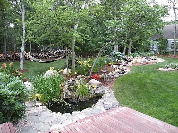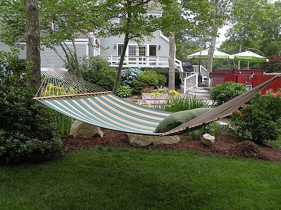 "Cape Cod Covid Shangrila" Perfect property in gated community for the professional couple that has a commute and needs an office at home: or large family . It is 10 minutes to the Bourne Bridge It is 5 minutes to the Shining Sea Bike path. Less than10 minutes to Old Silver Beach. 10 minutes to Falmouth Main Street and 10 minutes to Mashpee Commons. We really don’t want to leave but it is too much property for the two us to keep up with. Doing this without a realtor would be a win win in my book so call us for an appointment to look! Custom Designed Post & Beam Contemporary home by Acorn Homes on over an acre of land. Zillow is totally off the mark on this home. This North Falmouth home has an open floor plan with huge windows and vaulted ceilings with 3 fireplaces. In the great room, library/office area overlooking the phenomenal yard. Master bedroom w/mstr bath & fireplace. French doors allow you to close the kitchen & fire-placed family room off from the great room/dining areas. The utility room/laundry can be closed off with a pocket door adjacent to the kitchen & doorway to foyer & half bath. There are several places to have an office where you can watch the kids or look out on to the beautiful yard. Man Cave office, extra bedroom and full wood shop in basement, Huge out door living area. Deck is over 1,000 sqft. with hot tub and bar overlooking the fire pit. Upstairs there are 3 bedrooms, 2 with vaulted ceilings & a full bath. There is also a large sunny loft Office/Library. There is an additional bedroom in the finished basement. Adjacent to the office & man cave is a full wood working shop. Out side you won’t find more living area than this property. Cape Cod out door living at it’s best is enjoyed on no less than 1,000 sqft of deck with hot tub & bar. There is a double outdoor shower & changing room with bench. Complimenting the deck areas is a large Koi pond with a nighlighted down creek that empties into the lower aquarium. Go past the hammock hanging in the shade trees to the end of the adjacent foot path and there is a large matching shed with additional 200 sqft of deck area. Inside is where your John Deere is that goes with the property is stored. The deck & outside areas are all equipped with electric and hot & cold water. The landscaped yard includes a large fire pit, golf practice net & horse shoe pit area. There is plenty of grass for family sports and a dog etc.