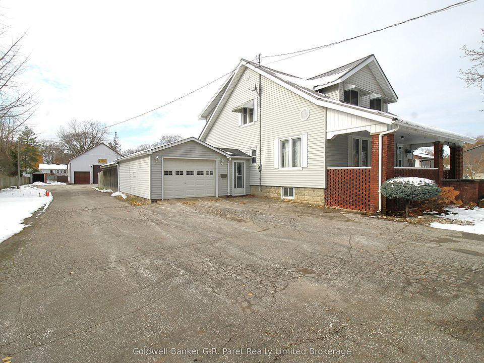 Zoned R2-3 Creating Endless Possibilities for Development and Potential to Severe ! This Charming 1 1/2 Storey Home Includes an attached garage as well as a 60x40 Heated Detached Shop to Legally Run your own business from the comfort of your home with an additional 30x20 Bay. The House is Perfect for the growing family with 5 Bedrooms and 2 Full Baths with a separate entrance creating the possibility for an in-law suite or downstairs Unit to rent. The Master Bedroom boasts a walk in Closet. The House has a Back-up Sump in case the Hydro goes out as well as a 220V sub panel in garage, municipal Water and Sewer while as a bonus The shop Includes a Sandpoint well to save on water. The shop also Features Air Compressor with Built in Quick connects, I Beam Trolly (to Hoist), LED Lighting, Data Cables, Drainage tiles, and updated Vinyl Windows. The possibilities are endless...