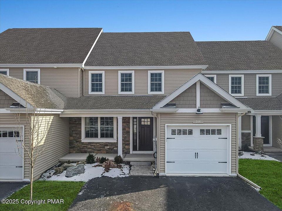 This stunning BRAND NEW quick-delivery townhome at Keswick Pointe is move-in ready and offers modern living at its finest. Featuring 3 spacious bedrooms, 2.5 bathrooms, and 2,452 SF of thoughtfully designed living space, this home is perfect for those seeking comfort and style. The expansive kitchen opens to a large family room with a cozy fireplace, ideal for relaxing or entertaining. A full basement with 1,360 SF offers endless possibilities for future expansion. The 1-car garage adds convenience and extra storage. The home boasts top-tier finishes, including elegant quartz countertops, rich hardwood flooring, beautiful landscaping, and a private deck. Townhome offers low-maintenance living. Keswick Pointe close to I-80 and area attractions. Virtual stagging used in some photos.
