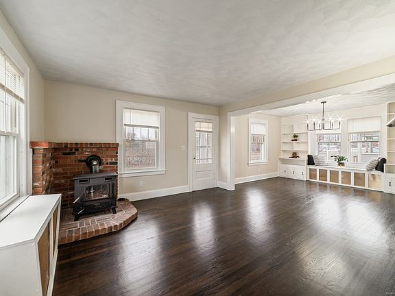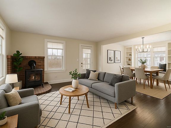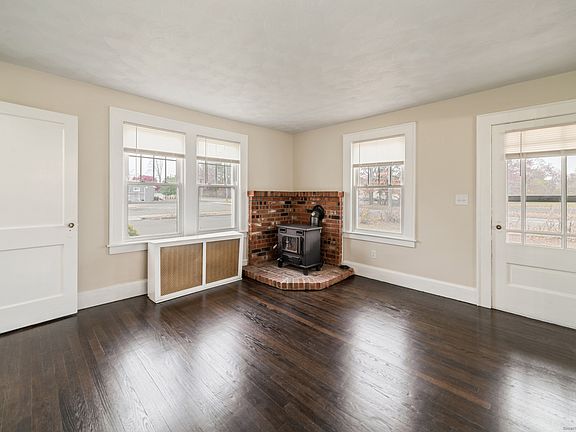 Welcome to this beautifully updated 3-bedroom, 2-full-bath Cape Cod home, ideally situated on a desirable corner lot with frontage on Bernie Ave. Inside, you'll love the refinished hardwood floors through the main living areas, enhanced by fresh paint and updated lighting that brightens every room. The spacious living and dining rooms combine to create an inviting open-concept layout-perfect for entertaining or everyday living. Maintaining its classic charm, the home features built-in shelving and a wood/coal stove that adds character while offering supplemental heat during colder months. The eat-in kitchen has been updated with new vinyl flooring and has plenty of cabinet space. Conveniently, the first floor also includes a comfortable bedroom and one of the home's full baths. Upstairs, you'll find two additional bedrooms and another full bath, offering plenty of room for family or guests. Outside, the detached garage provides both convenience and storage, along with a covered porch where you can enjoy your morning coffee or unwind in the evening. The corner lot provides additional outdoor space for relaxation, play, or gardening. Blending timeless Cape Cod style with thoughtful updates throughout, this home is truly move-in ready and waiting for its next chapter.