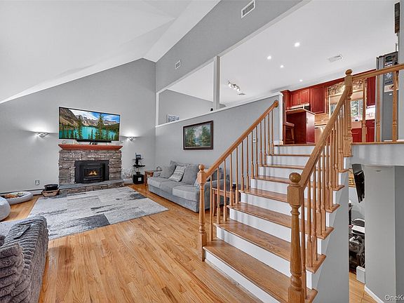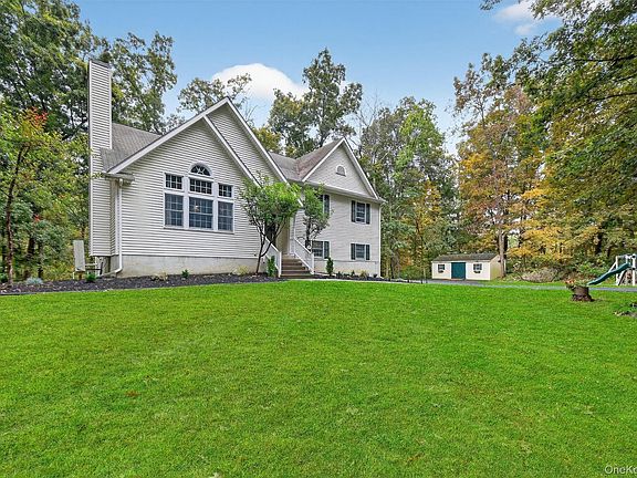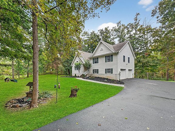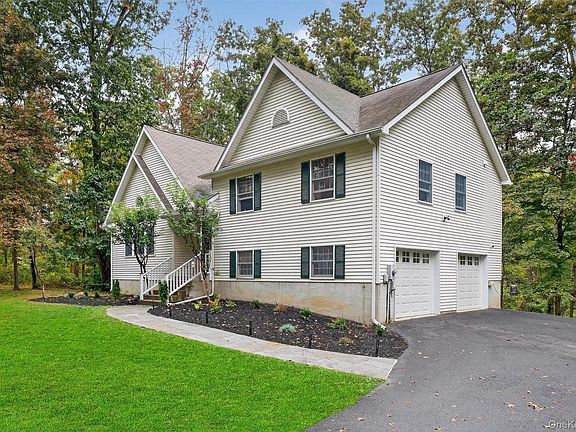 Video tour and floor plans available! Welcome home! Set back on almost 2 acres is this beautiful, unique, contemporary/raised ranch home, in the Arlington School district, ready for its new owners. Long list of updates available! Walk in the front door and you are welcomed with a large living room with high cathedral ceilings, lots of natural lighting, and a pellet stove wrapped in custom stone work. Go upstairs and you will find yourself in an open layout with the kitchen and dining room that overlooks the living room. The kitchen has been completely updated with custom cabinets, stainless steel appliances, an oversized breakfast island, and beautiful gleaming granite counters. The home offers hardwood floors throughout. Down the hall from the kitchen you will find a full guest bath along with 3 bedrooms. The primary bedroom offers a walk in closet and a primary private bath suite. The 2 additional bedrooms have ceiling fans and California style closet organizers! Head downstairs and you have another living room with built in surround sound speakers, a pellet stove, and a walk out sliding glass door. Downstairs also offers a half bath, a laundry area, crawl space for storage, and a two car garage. Just a few minutes to the taconic state parkway making it a commuter’s dream! Book your showing today, you won't want to miss this one!