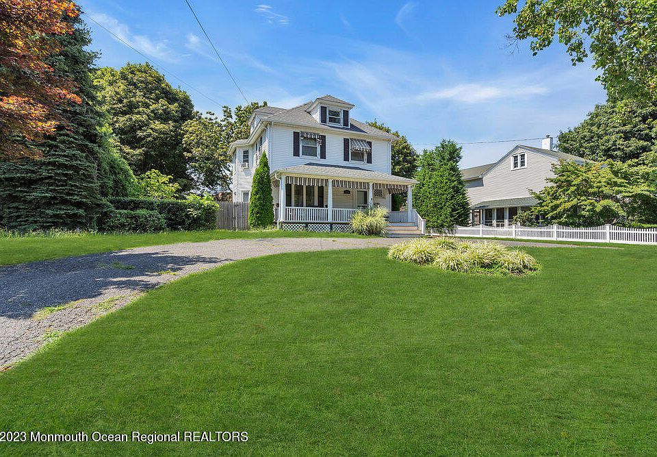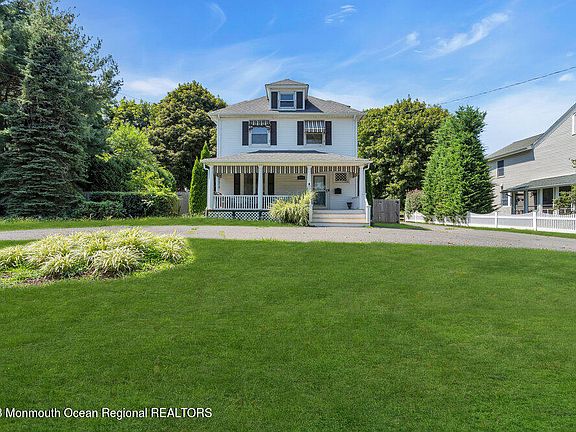Beautiful Shore Colonial. Circular driveway leads to a Rocking Chair Front Porch. Large entry foyer welcomes you to a spacious & sunny Living Room & Formal Dining Room. Gorgeous original woodwork. Oak pocket doors divide the rooms. Wonderful Oak Floors throughout w/detailed Oak banister & Decorative Moldings. Inviting Kitchen w/Breakfast Bar; Full Bath & Laundry area complete the 1st floor. 2nd floor boasts Master Bedroom w/walk-in closet; two additional Bedrooms & Full Bath. Full Attic is a perfect bonus room; office; or playroom. Full basement is designed for recreation. Huge backyard totally fenced w/above ground pool. This home is situated in close proximity to Monmouth University, beaches, Pier Village, & all Public Transportation. Walking Distance to West End Shops and Restaurant