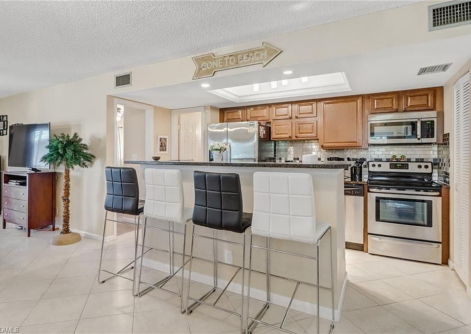 Welcomes to Glades Country Club! This Lovely Corner Unit offers a private location overlooking lush landscaping and canal from a large screened in wrap around balcony. Tastefully updated throughout and offered turnkey, you can start enjoying your time in this home immediately. This unit features an open floor plan that connects the kitchen, dining and living room, ideal for entertaining guests. And a split floor plan that provides privacy to your guests away from the Primary en-suite bedroom. Other features include: Stainless Steel Appliances, Wood Cabinets, Granite Counter Tops, Updated Fixtures and in-unit laundry. Glades Country Club is truly a playground for active adults... spend your days in the warm Florida sun enjoying all of the amazing amenities this community offers. Including Two 18 Hole Golf Courses, Pro Shop, Clubhouse Restaurant, Resort Style Pool, Tennis Courts, Pickle ball, Bocce and countless Social Activities and Events. Located just a few short minutes to Tin City, Fifth Avenue South, Naples Beach and Pier, Fine Dining and Shopping. Just when you thought it couldn't get any better, this property comes with a One Year Home Warranty and a Professional Cleaning.