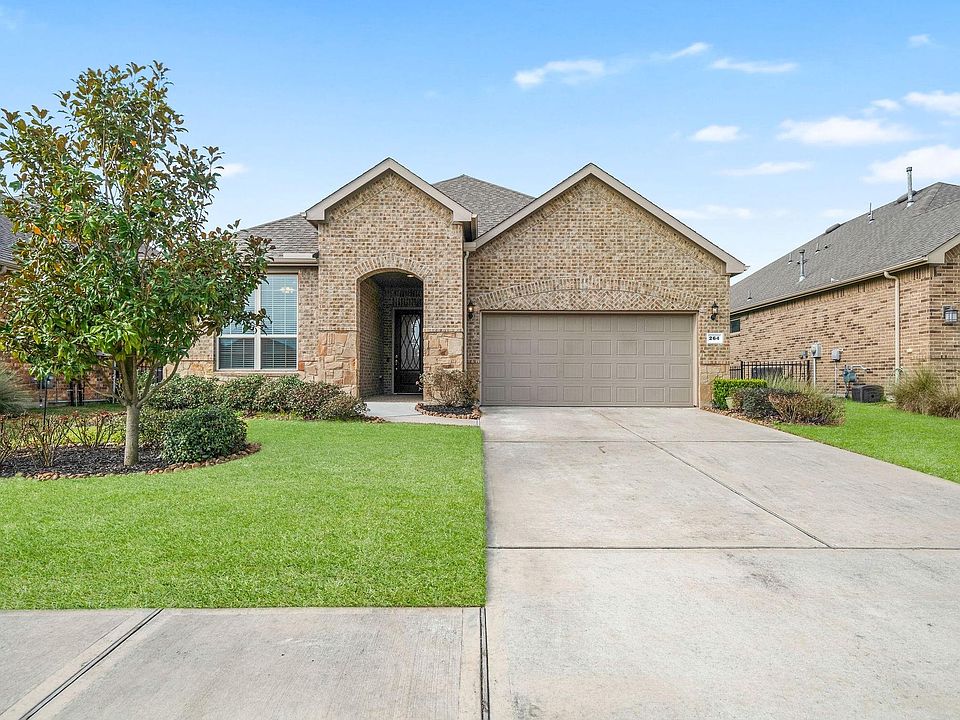 Immaculate all brick home, located in the premier 55+ gated community of Del Webb - The Woodlands, TX! As you pull up the drive way to your new home, you will find new holly and magnolia trees. Leading to your front door, a brick front porch and extended entry way greets you. Once inside, wood floors, high ceilings, 8' doors, and an open floor plan will have you feeling right at home. In the kitchen, 42" cabinets, built-in microwave and stove, reverse osmosis, and water softener are just a few of the upgraded features. Master Bathroom features a fully upgraded tile shower, with 6 sprayer heads, an overhead shower, and built-in shower bench. Oversized Garage has remote entry and epoxy flooring. Stampede concrete on the large covered back patio, is just waiting for your favorite chair and a cup of iced tea!