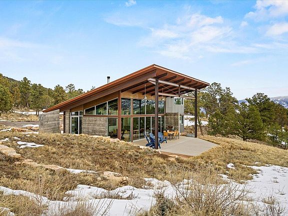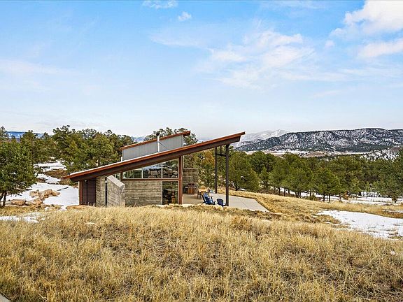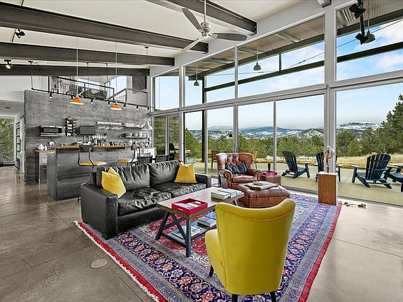 ''Rocking Star'' located near Ridgway in the picturesque Pleasant Valley, this stunning mountain sanctuary epitomizes industrial/contemporary luxury living amidst nature's grandeur. Crafted with meticulous attention to detail, this modern masterpiece boasts high-quality concrete and glass construction, exuding sophistication and elegance at every turn. Upon entering, floor-to-ceiling windows frame panoramic vistas of the majestic Mount Sneffels and Cimarron ranges, inviting the awe-inspiring beauty of the surrounding landscape indoors. The spacious living areas seamlessly blend with the natural surroundings, creating an ambiance of tranquility and serenity. The main residence features two generously appointed bedrooms and 2 1/2 baths, each meticulously designed to offer comfort and style.