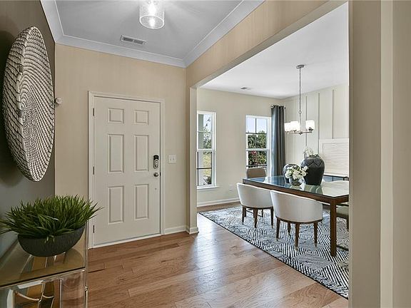 New Construction in the Renowned Harrison High School District! This stunning Continental floorplan offers the perfect blend of comfort, style, and functionality with an open-concept layout designed for modern living. The spacious kitchen features a large island that seamlessly overlooks the expansive gathering room and dining area—ideal for both everyday life and entertaining. A convenient guest suite with a walk-in shower is located on the main level, perfect for hosting overnight visitors. Upstairs, you’ll find a versatile loft, three generous secondary bedrooms—one with a private en-suite—and a luxurious owner's suite complete with a sitting room retreat for added relaxation. The home also includes a 3-car garage, offering ample storage and parking space. Located in a low-maintenance community where the HOA covers lawn mowing, blowing, and trimming on your homesite—plus AT&T fiber optic high-speed internet is included! Enjoy quality living in a peaceful West Cobb setting with top-tier schools and modern features throughout.