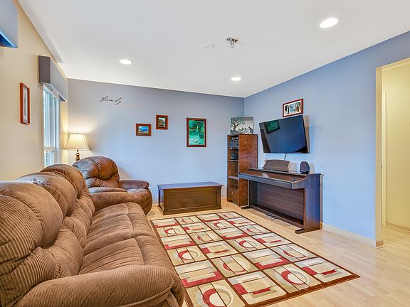 So much to like about this home!! Nice end unit and one of the few townhomes in the area with a basement. Updated kitchen, with repositionable center island, large pantry, stainless steel appliances, wood laminate floor, granite counters and slate tile backsplash. Newer sliding glass door opens to a good size deck overlooking wide open area. Three bedrooms upstairs and updated bath with granite counters and tile floor!! All bedrooms have closet organizers and ceiling fans. New windows upstairs in 2014!! Nice finished basement with canned lighting for family entertaining plus storage and laundry area. Living room and basement wired for surround sound and Cat5E wired throughout house. Rare service door in back of garage for easy access. Low association fees! Roof and oversized gutters and downspouts replaced in 2012. Close to parks, shopping and schools! Come see your new home!!"