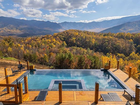 Welcome to Mt. Sunshine, your ultimate mountain escape nestled in the scenic Cosby, TN. This stunning 3,300 sq ft cabin offers jaw-dropping views and luxurious amenities, including an infinity pool and hot tub for your relaxation. Host unforgettable movie nights in the state-of-the-art theater or enjoy cocktails in the secret speakeasy. Accommodating up to 22 guests, this cabin is perfect for family reunions or getaway weekends with friends. Small weddings are welcome for additional fees and rules.