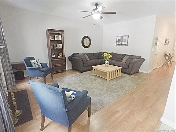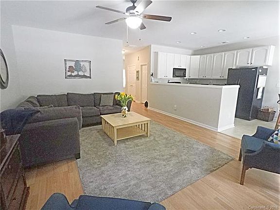 Beautiful and very well maintained End Unit Town Home in the desirable Fort Mill School District. Welcoming Rocking Chair Front Porch, Large entrance hall with a walk in coat/storage closet, powder room, Kitchen and breakfast area open to a great room with a gas fireplace that is perfect for entertaining. Lovely back yard has a private backdrop of trees and a fenced in patio with access to large green space on the side of the home. Upstairs comprises of 2 good sized bedrooms, Laundry room, 2 full bathrooms and a Loft area that can be used for an office or playroom. Master bedroom has an on suite, walk-in closet and a sitting room room that can also be 3rd bedroom or nursery. Water/Sewer and trash are included in HOA. Great location with Community pool and close to I-77, The Riverwalk neighborhood, Anne Springs Close Greenway, Walking trails and downtown Fort Mill.