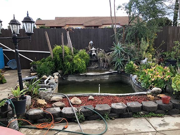 Spaciously upgraded single level home (1,145+ sq ft) with detached 2 cars garage and ample parking/storage. Gated entrance and large (.275 acres) fenced yard with easy access to the freeway. Must see! As you walk through the door, there is a spacious living room, dining room and updated kitchen with hardwood floors throughout. 3 bed/2 bath, master w/en suite. The two additional bedrooms share the second bathroom. A sperate laundry room. Sliding glass doors lead out to the expansive paved patio and lovely fish pond, great for entertaining. Plenty of room for gardening too. Dogs are allowed with additional deposit No cats Terms: Tenant responsibilities: include utilities and yard maintenance Credit/references/background check required @applicants cost $2200 First month rent and $2200 security deposit w/ a minimum 1 year lease Tenant responsibilities: include utilities and yard maintenance