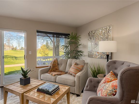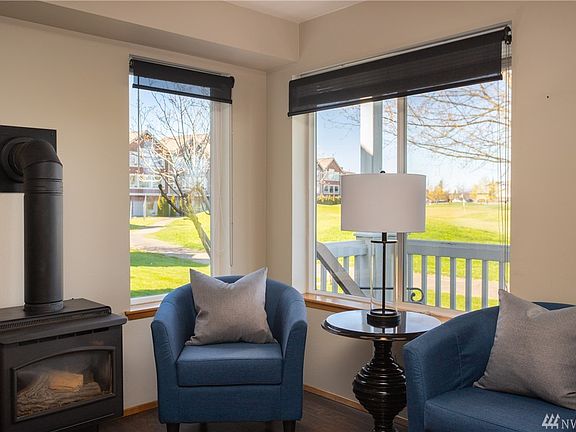 Ground Floor Unit on the Homestead Golf Course w/updates throughout! Upgrades include laminate wood flooring, quartz counter-tops, and kitchen island w/farmhouse sink. Spacious bedroom w/walk in closet, full bathroom, and storage/utility space featuring newer washer/dryer. Cozy up next to the fireplace with views of the golf course and catch the sunrise over Mt Baker from your peaceful back patio.