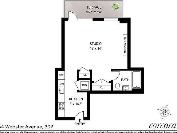 264 Webster Ave. Unit #309 is a spacious sun-filled studio that could easily convert to a ONE BEDROOM (see alternate floor plan) with a large private balcony located at 264 Webster Avenue, a luxurious condominium with a parking garage (sold or leased separately) and a 24-hour doorman, it is chock-full of amenities standing in the vibrant neighborhood of Kensington. With many years left in the 15-year abatement, your monthly tax bill is just under six dollars! That's the price of a latte!