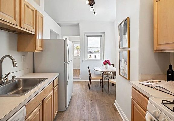 Lots of cabinet spacePrivate roof deckGenerous closet spaceGas rangeVaulted ceilings with skylightLarge eat-in kitchen