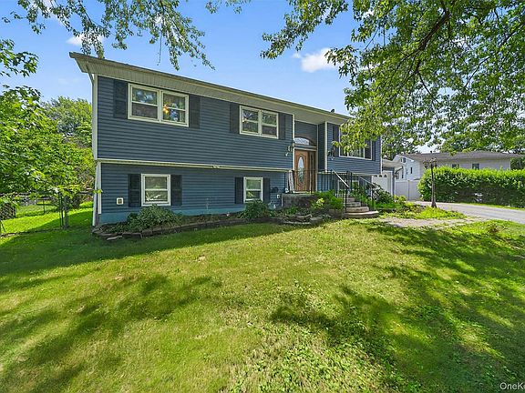 Price Improved! Spacious and inviting, this raised ranch home offers over 2,300 square feet of living space in the highly sought-after Village of Montgomery. Featuring 3 bedrooms and 2 full baths, the home blends comfort and character with a cathedral and beamed ceiling that enhances the light-filled eat-in kitchen. Just off the kitchen, a versatile den or office space provides a perfect work-from-home setup and opens to the back deck—ideal for relaxing or entertaining. Recent updates include newer siding, roofing, and a tastefully renovated hall bath, offering modern appeal. The spacious backyard offers plenty of room to entertain and garden. Located within the Valley Central School District and just minutes from the village's charming dining and boutique shopping, this home also provides easy access to major highways, grocery stores, and Stewart International Airport. A fantastic opportunity to enjoy small-town living with all the modern conveniences close by.