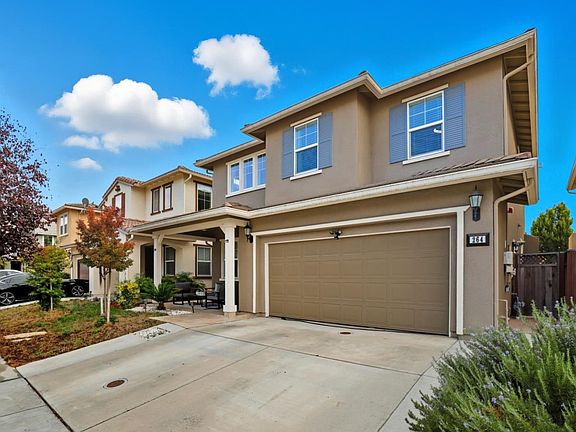 Welcome to 264 Windsong Way in Gilroy, a beautifully updated 4-bedroom, 3-bathroom home that seamlessly combines modern style with everyday comfort. The open and airy interior features high ceilings, rich hardwood floors, custom wall paneling, and designer-painted walls throughout, creating a bright and inviting atmosphere. The kitchen showcases modern cabinetry, sleek hardware, updated granite countertop, and a new island pendant light perfect for both daily living and entertaining. Bathrooms feature contemporary finishes, while the family room centers around a cozy gas fireplace that adds warmth and charm. Step outside to enjoy a private backyard designed for relaxation and gatherings, complete with a pergola that provides shade and an ideal space for entertaining, low-maintenance artificial turf, and no rear neighbors. Serene views and HOA-maintained green areas, walkways, and sidewalks enhance the sense of community. Energy-efficient 8,000 KW paid-off solar panels and tankless water heater help reduce utility costs, adding to the home's overall value. Perfectly situated near scenic trails, shopping, dining, & within the desirable Rucker Elementary and Christopher High School boundaries, this home offers comfort, style, and convenience, making it a perfect place to call home.