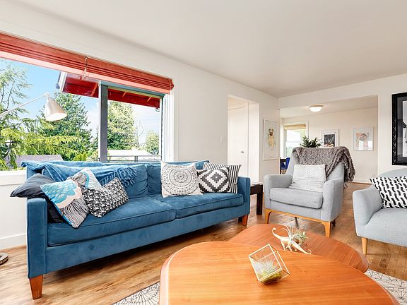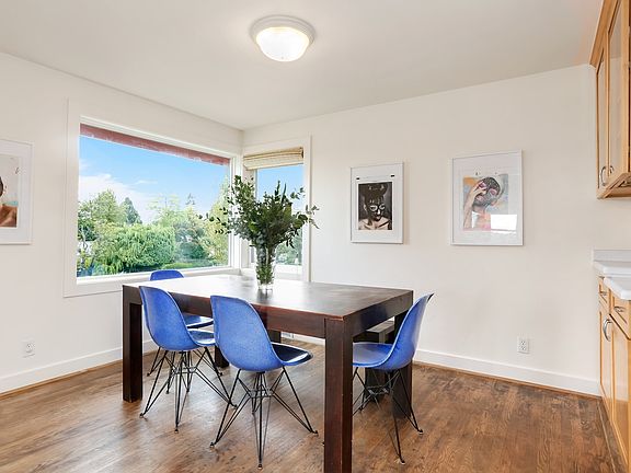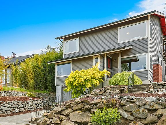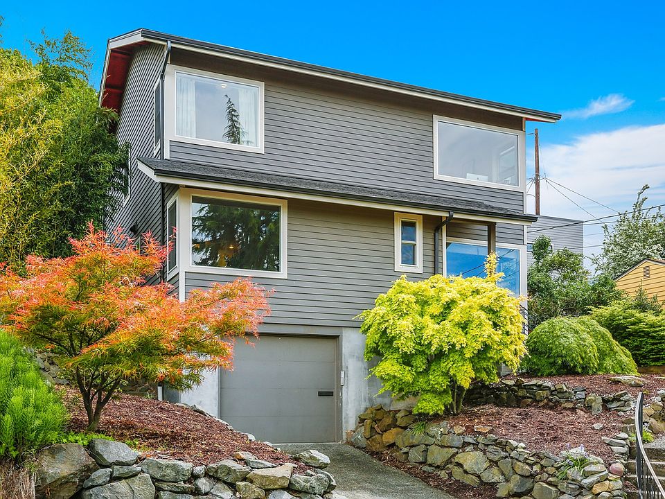 Perched high off the street, this bright and sunny West Queen Anne home has all the space you need! Main floor has a large living area, dining room, and kitchen with a side entry leading directly out to the backyard patio. Upstairs you’ll find bedrooms with vaulted ceilings and beautiful west-facing views and additional office space. Master bedroom access to a large covered balcony. Plenty of storage in the basement workshop area. On a quiet street near all the action on Queen Anne!