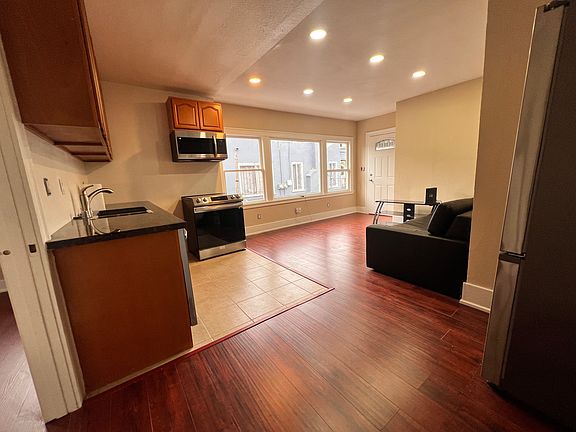 Features: Private entrance, gated parking (1 space), ample street parking, smart home system with Alexa automation, security cameras, and in-facility laundry. Granite top kitchen, stainless steel appliances including fridge, microwave, dishwasher & stove range. Beautifully designed bathroom