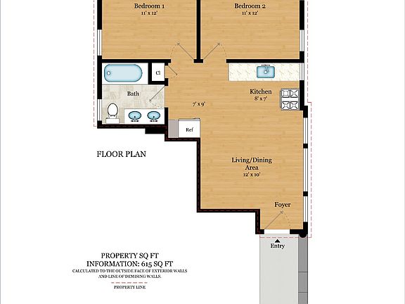 Size: ~650 sq ft, spacious 2-bed/1-bath layout