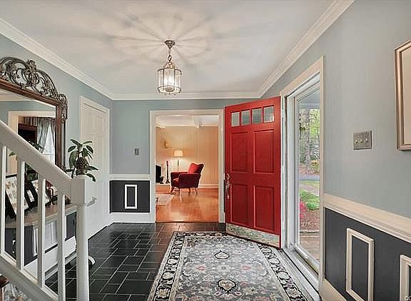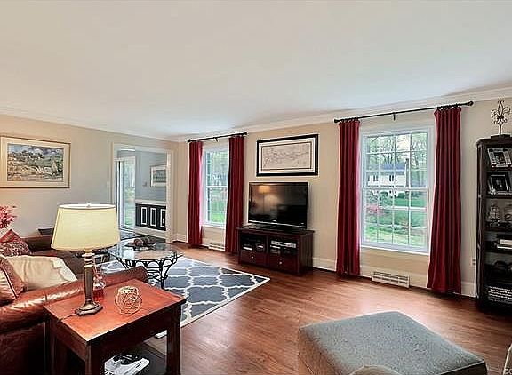 Located on the 7th Tee on Salisbury Golf course sits this solid brick charmer with grand manor roof, Pella replacement windows, irrigation, mature landscaped lot, paved drive and an amazing view! Tile floor in the foyer and lovely mill work detail. Spacious family room with cozy fireplace and gorgeous mantel, warm hardwoods, and crown detail throughout. Formal dining room with custom paint that puts off a soft gold glow, French doors to rear deck and 6 panel pocket door to kitchen. The kitchen offers gas cooking, stainless appliances, two sets of french doors to porch and an abundance of solid wood cabinetry and counter space. Living room boasts a 2nd fireplace with brick hearth, beamed ceiling and bar. Enclosed sun porch with tiled floor, tongue and groove ceiling with fan which opens to expansive rear deck and views of the stunning rear yard and golf course! Master is a tranquil retreat with fresh paint, ceiling fan, WIC with organizers, large full bath. Bonus room/yoga studio/game/pool room/or 6th bedrm with laundry and closet. 4 additional bedrooms with clg fans and fresh paint round out the 2nd floor as well as the updated full hall bath with tub/shower and double sinks.