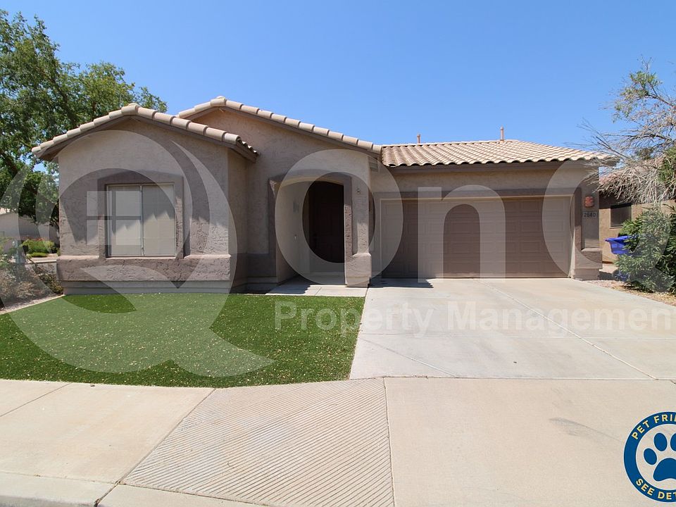 1,161 SQ FT! 2 bedroom, 2 bath home in Chandler's Cooper Commons. Desirable single story floor plan. Charming eat-in kitchen with included appliances, & breakfast bar! Off kitchen dining with french door patio access. Spacious living area! Neutral interior with tile flooring in all the right places. Split bedroom floor plan offers 2 nicely sized bedrooms, each with ample closet space! Blinds + ceiling fans. Included washer/dryer! Enjoy a low up keep backyard with covered patio, extended pavers, & artificial turf. 2 car garage! Located on a desirable corner lot. Cooper Commons is a well maintained community with community pool, playgrounds, & biking/walking trails throughout!