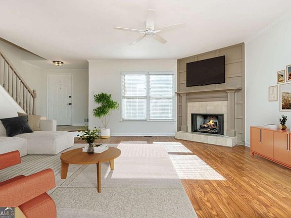 Incredible Value in Alpharetta! This beautifully maintained two-bedroom, two-and-a-half-bath townhome offers exceptional space, comfort, and convenience in a prime location near the vibrant communities of Alpharetta, Roswell, Johns Creek, and Peachtree Corners. As you step through the front door, you're welcomed by an expansive living area centered around a cozy fireplace-perfect for relaxing or entertaining. The open dining area connects seamlessly to both the living room and kitchen, creating a natural flow throughout the main level. The kitchen features an oversized island ideal for gatherings, upgraded cabinetry extending to the ceiling, and stainless steel appliances. From either the kitchen or living area, step onto the covered back deck overlooking manicured grounds, offering a sense of privacy and tranquility rarely found in this area. Upstairs, you'll find brand-new carpet throughout. The primary suite features a walk-in closet, double vanity, and a separate shower and soaking tub, along with its own private deck with peaceful views. The spacious secondary bedroom includes a double closet and private full bath, providing guests both comfort and privacy. A rare find, this home also offers an oversized two-car garage with plenty of room for storage. Both the HVAC and water heater have been recently serviced and inspected for peace of mind. Perfectly situated just off Holcomb Bridge Road, this home offers convenient access to Alpharetta, Roswell, Johns Creek, and Peachtree Corners, making commutes and weekend outings effortless. Residents enjoy proximity to a wide variety of dining, retail, and recreation options. Popular nearby destinations include East Village Shopping Center for everyday essentials, and the charming restaurants and boutiques of downtown Alpharetta and Roswell. Nature enthusiasts will appreciate being just a short drive from Brooke Street Park & Arboretum, a beautiful green space with walking paths and serene views. With over 200 restaurants in the Alpharetta area alone, dining and entertainment options abound. With its thoughtful updates, functional layout, and unbeatable location, this townhome represents one of the best values in Alpharetta-move-in ready, feature-rich, and perfectly positioned to enjoy all that North Fulton living has to offer.