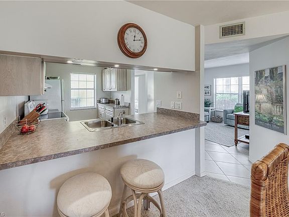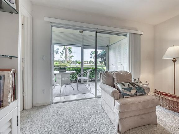 C14138 This unique and rarely available FIRST FLOOR Cypress model floor plan, 2+ Den & 2 bath END UNIT condo is sure to please. All new plumbing pipes in 2016, water heater 2016, new Roof in 2018. Step in and you are greeted by the first bedroom, full bath, & den to the left and the kitchen to the right. The den can easily be converted into a 3rd bedroom. The kitchen is ample in size with plentiful cabinet and counter space with a dry/coffee bar, under cabinet lighting, & natural light. The dining area and living area have great views of the screened in lanai with access to the picturesque lake. The primary bedroom is a retreat with sliding glass doors to the lanai flooding the room with natural light and large walk-in closet. The large lanai (length of the unit) with ground level-access features park-like views of the lake and 1.25 mi walking path. Peace of mind is enhanced with your own designated carport space conveniently located in front of the unit, hurricane shutters, no stairs or elevators to deal with, and is located within 3 miles to downtown 5th Ave S, a mile to Kings Lake Square shopping & dining, & less than 5 miles to Naples famed beaches!