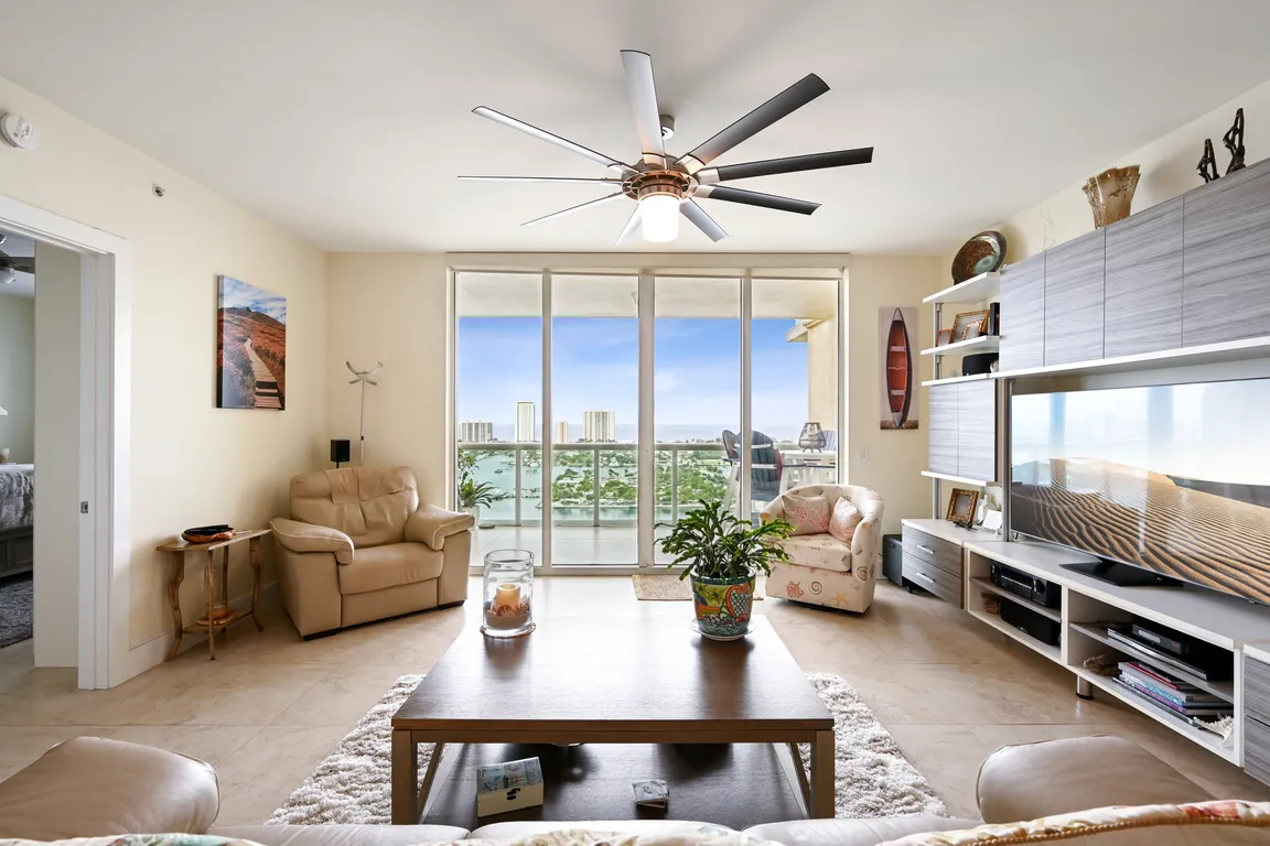 Gorgeous direct, unobstructed views of the Intracoastal Waterway and Atlantic Ocean from this preferred Ocean Tower, 23rd-floor residence at Marina Grande. Enjoy breathtaking sunrises and refreshing ocean breezes from your spacious balcony, living room, and owner's suite. Desirable split floor plan features 2 bedrooms plus a large den--ideal for a home ...