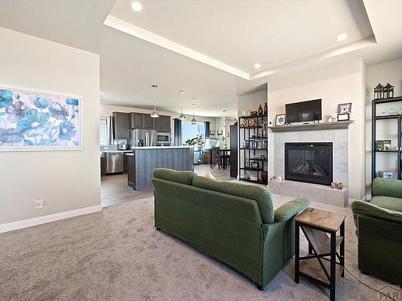 Your Dream Home Awaits! Situated on over 35 acres with breathtaking Pikes Peak views, this stunning ranch home offers main-level living with a spacious crawl space. Thoughtfully upgraded, it features a custom primary bath with a large linen closet, separate vanities, walk-in closets, a standalone tub, an enclosed toilet room, and a large shower. The gourmet kitchen boasts an oversized island with a vegetable sink, an extra-large gas cooktop with a pot filler, upgraded lighting, a wall oven with a microwave, and a utility sink in the laundry room. Enjoy modern comforts like an upgraded crawl space, a large electrical box for an RV hookup or equipment, AC hookups, a gas line for a grill or fire pit, and a gas fireplace in the living room. Plus, an enlarged dining room window showcases stunning Pikes Peak views!