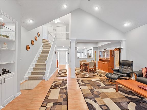 Experience refined living in this Cape Cod–style condominium within the highly desirable Vintage Glen community. An open floor plan, neutral palette, and abundant natural light highlight the home’s timeless architectural details. The welcoming foyer leads into a living room with built-in cabinetry, a cozy gas fireplace, and vaulted ceilings. From here, the space flows seamlessly into the sunroom, which opens to a private Trex deck and new vinyl privacy fence—perfect for outdoor relaxation. The formal dining room, accented with a trey ceiling, adds elegance to the main level. The kitchen impresses with soft-close white cabinetry, Corian countertops, stainless steel appliances, and luxury vinyl plank flooring (2023). An oversized window brightens the eat-in area with morning sunlight, connecting effortlessly to the dining and living spaces. A first-floor office provides flexible space for work or hobbies. The primary suite on the first floor features dual walk-in closets and a beautifully remodeled bath with an oversized tile shower, heated floors, tall linen cabinet, and double vanity. Upstairs, two spacious bedrooms with generous closets share a full bath. Additional highlights include first-floor laundry, powder room, attached two-car garage, window tinting on first-floor windows and skylights, honeycomb shades, and thoughtful updates: hot water tank (2025), central air (2018), garage door opener (2018), and ductless heating/cooling in the sunroom (2018). This home offers convenient access to highways, Crocker Park, the Westlake Recreation Center, Bradley Woods MetroParks, and more. Enjoy comfort, style, and a prime location—schedule your private showing today.