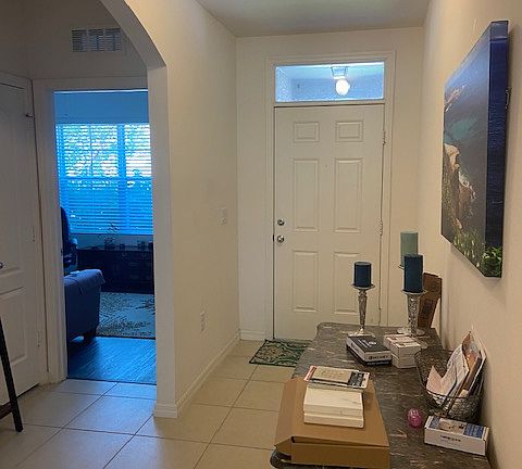 Come live in this beautiful house in a great neighborhood. House located in the community of Sabal Lakes with a community pool. The house sits at the far back of Sabal Lakes which means it has the least through traffic and it borders on the bike trail. The garage door opener is a "silent" model; Big difference in noise within the house. Master bedroom has an en suite bathroom. Master bathroom has a double vanity and walk in shower with large walk in closet. The home has tile and laminate flooring no carpet. Sabal Lakes is located right beside the New Smyrna multi use Bike Trail of New Smyrna so bring your bikes! 3 bedroom 2 bath home, 2 car garage Small dog accepted with pet fee.