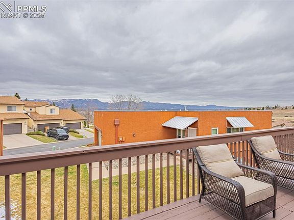 Check out this charming adobe-style townhouse in Colorado Springs, blending cozy character with modern comforts! Featuring 2 bedrooms, 3 bathrooms, and a 2-car attached garage, this home offers the perfect combination of space and style. Step outside onto the deck to enjoy breathtaking views of the Front Range and Pikes Peak – it’s like living in a postcard! The neighbors to the rear have flat roofs which gives you unobstructed views of Pikes Peak. Pictures do NOT do the views justice. Location? You’re in the heart of it all: shopping, hospitals, schools, trails, and the Air Force Academy are just minutes away. The spacious dining room is ideal for hosting family and friends, and the kitchen shines with solid countertops and stainless steel appliances. Relax in the roomy family room, and enjoy the convenience of having a private bathroom for each bedroom. Recent updates include a new roof, hot water heater, and updated kitchen appliances. With central A/C, you'll stay comfortable year-round. Plus, it's in the highly sought-after Academy 20 school district.