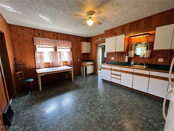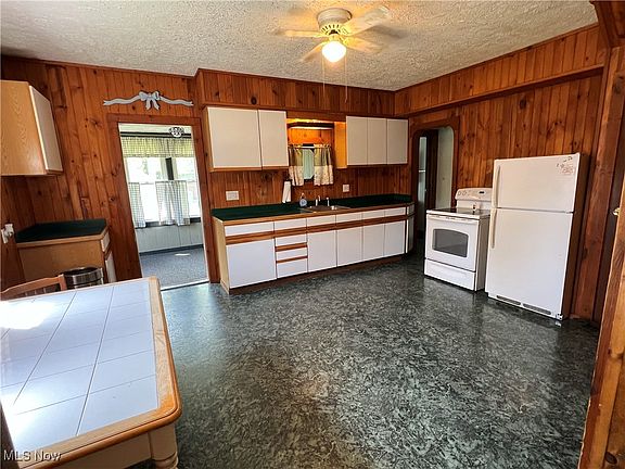 - Description: Range, Refrigerator stays, Knotty Pine Paneling,Flooring: Luxury Vinyl Tile